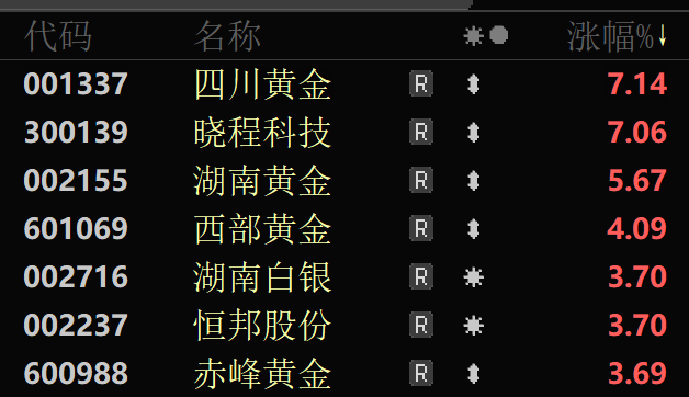 受金价回暖带动,五一小长假后首个交易日贵金属概念股也整体飘红。截至下午收盘,Wind贵金属指数报涨2.3%,个股中四川黄金涨超7%,湖南黄金涨5.67%,西部黄金涨超4%,湖南白银、恒邦股份等多只个股涨超3%。