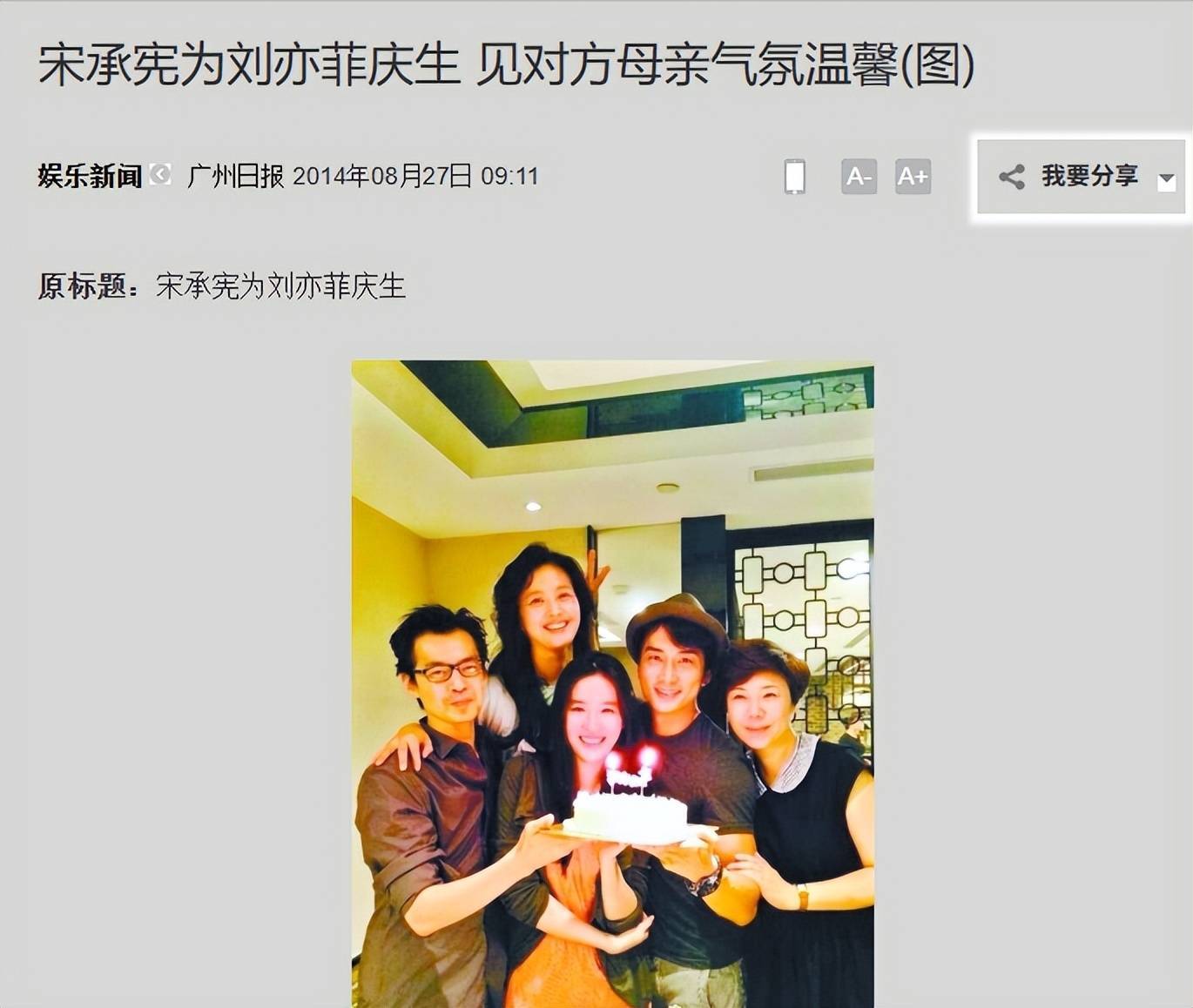 甚至有一次宋承宪晒出的为刘亦菲庆生的合影当中还出现了刘亦菲妈妈的身影。